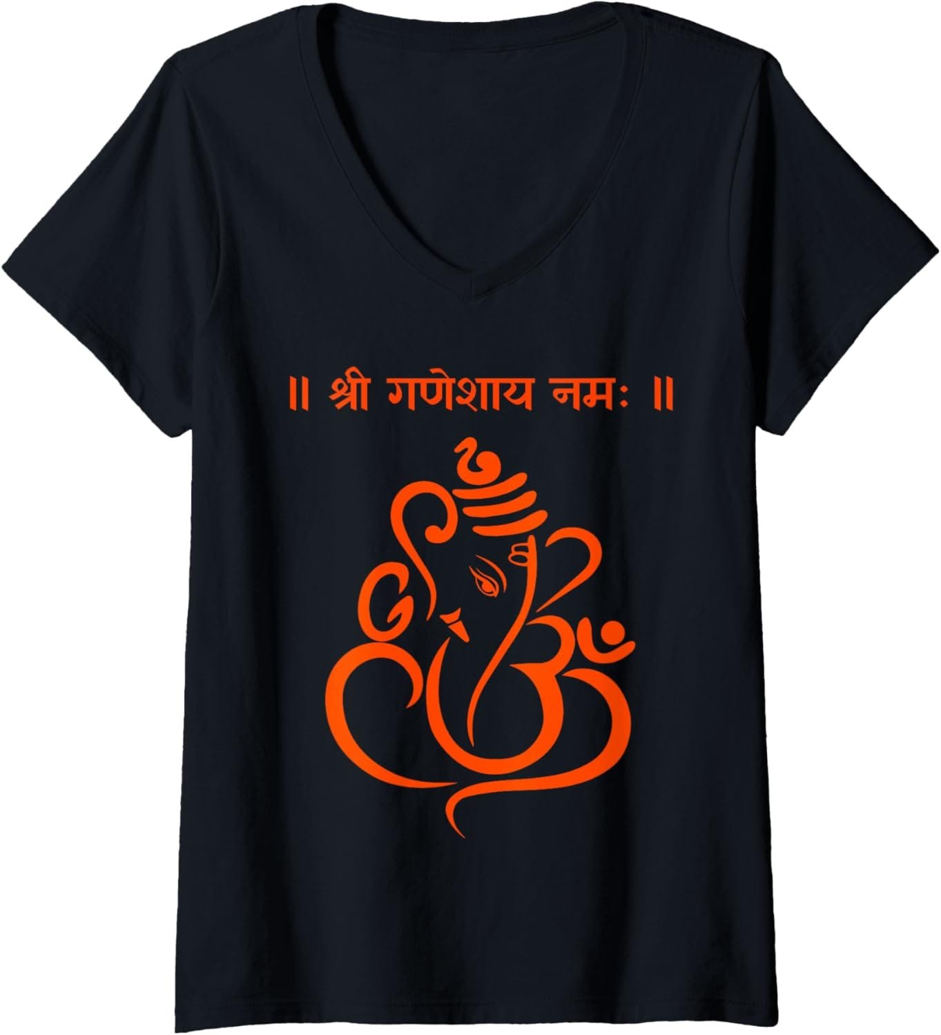 Show your devotion with our Shree Ganeshaya Namaha V-neck T-shirt, featuring elegant Sanskrit design.